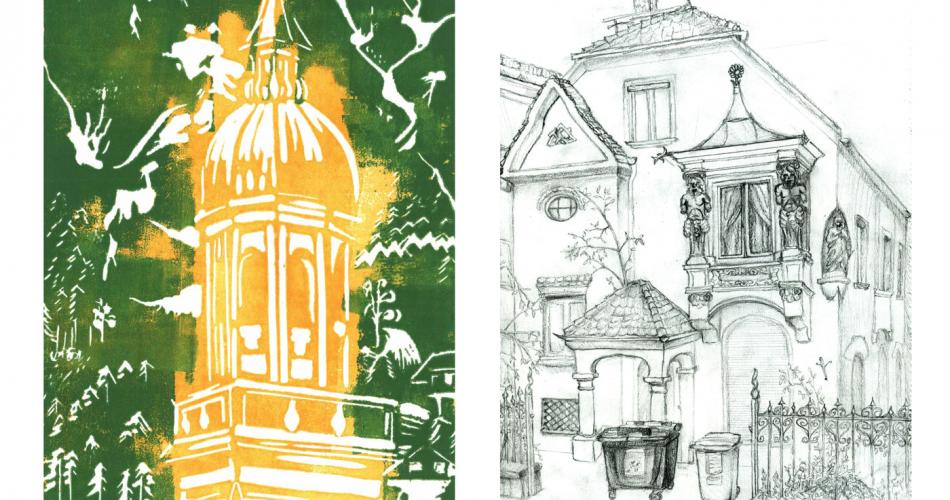 Schülerinnen und Schüler von den 1. bis zu den 7. Klassen haben sich in diesem Kunst-Projekt mit Innsbruck beschäftigt und deren Werke sind auch in der Ausstellung zu sehen.
