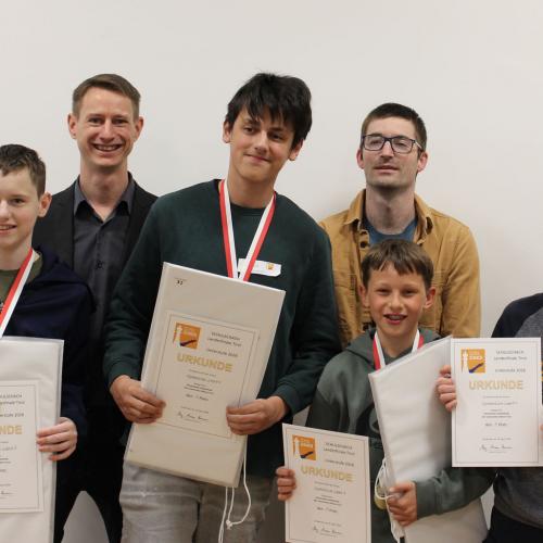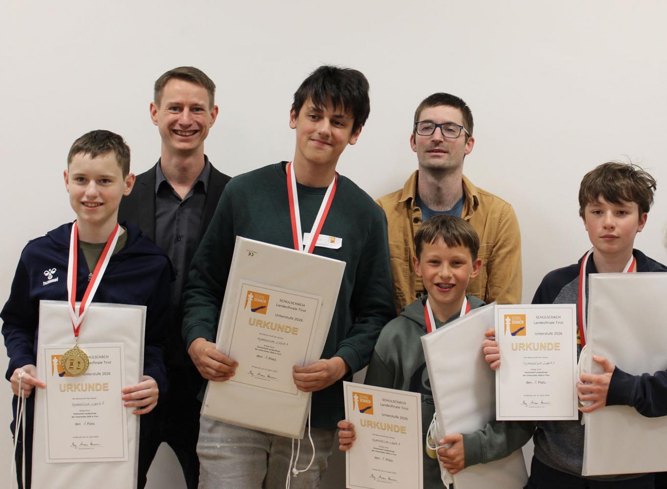 Bei einem Unentschieden in der letzten Runde gegen die aus Vereinsspielern bestehende Mannschaft des Gymnasiums Lienz wäre für unser Team 1 sogar ein Podiumsplatz möglich gewesen. In einem offenen Wettkampf setzte sich bei der 1:3 Niederlage aber die Erfahrung durch. Team 2 verpasste durch eine unglückliche Niederlage auf Brett 1 in der Schlussrunde den möglichen 4. Endrang. Die besten Einzelergebnisse unter unseren insgesamt 20 Spieler*innen erzielten Tobias Gartner (3E) – als Unterstufenschüler – auf Brett 1 mit 3 von 5 Punkten sowie Philipp Liebentritt (8C) mit 5 aus 5, Masin Mahmoud (8B) mit 4 aus 5 und Daniel Gschösser (8C) mit 3 aus 4.