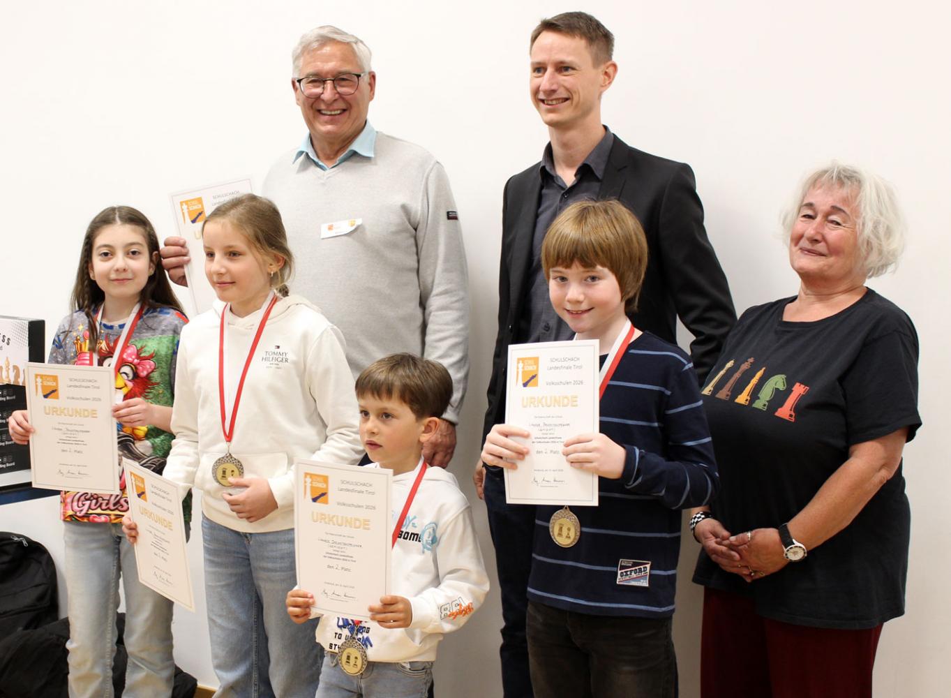 Der Hauptbewerb beim diesjährigen Schulschach-Landesfinale war das aus 23 Mannschaften bestehende Unterstufenturnier am Freitag. Team Sillgasse 2 übertraf beim ersten Antreten mit Rang 16 eindeutig die Erwartungen, während Team 1 sogar ganz vorne mitspielte. Ein halber Punkt mehr im Wettkampf der letzten Runde hätte Platz 2 bedeutet. Das 2:2 Unentschieden gegen Team A der MS Schwaz 2 reichte am Ende aber schließlich zum hervorragenden 4. Gesamtrang! Herausragend spielten Tobias Gartner (3E) mit dem Punktemaximum von fünf Punkten sowie Polina Batkova (2B) mit vier Punkten aus vier Partien.