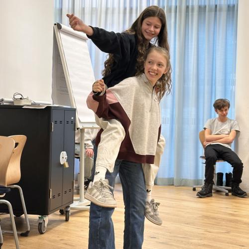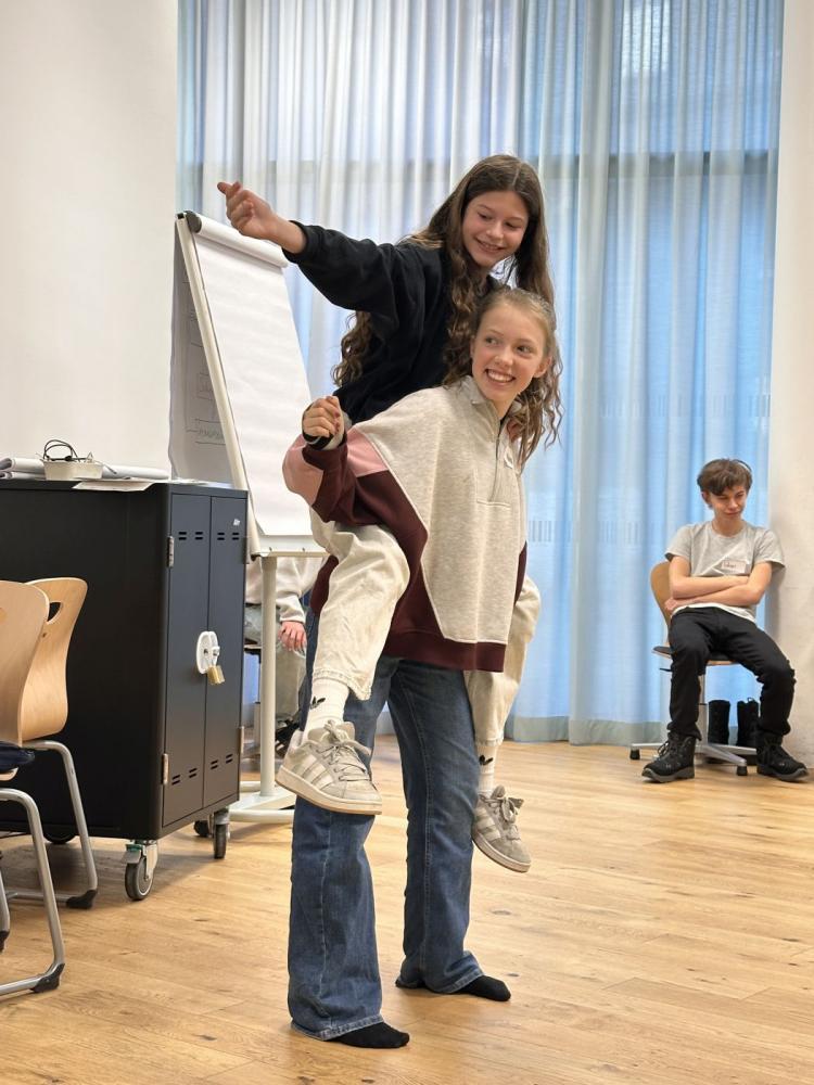 „A glass of water!“ erscheint auf den ersten Blick wie ein langweiliger Satz. Die Englischgruppe 3DE wusste allerdings, wie man ihn zum Leben erweckt. Mit dieser und vielen anderen lustigen Aktivitäten konnte Theaterpädagoge Christoph Daigl die Schüler:innen aus der Reserve locken und sorgte für unterhaltsame Momente und tolle englische Dialoge. Die Schüler:innen hatten sichtlich Spaß und hoffen auf ein baldiges Wiedersehen.