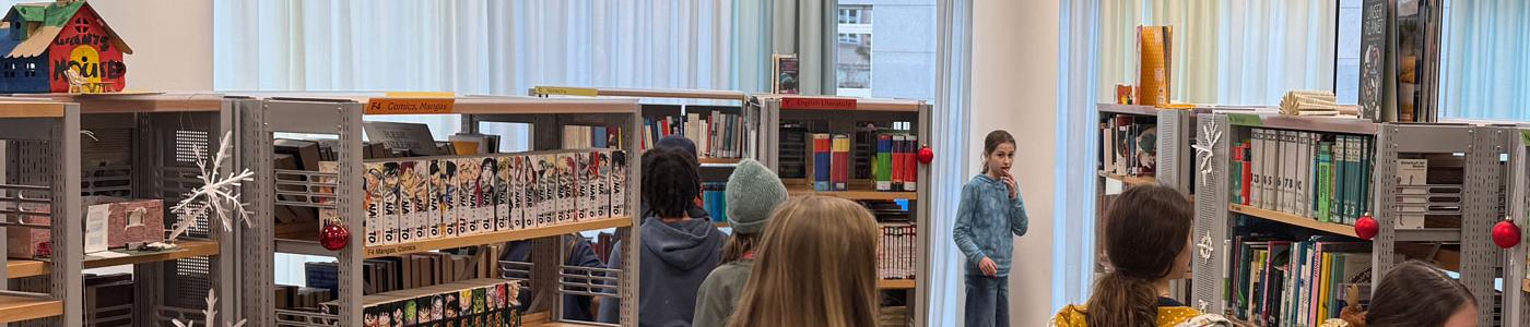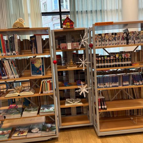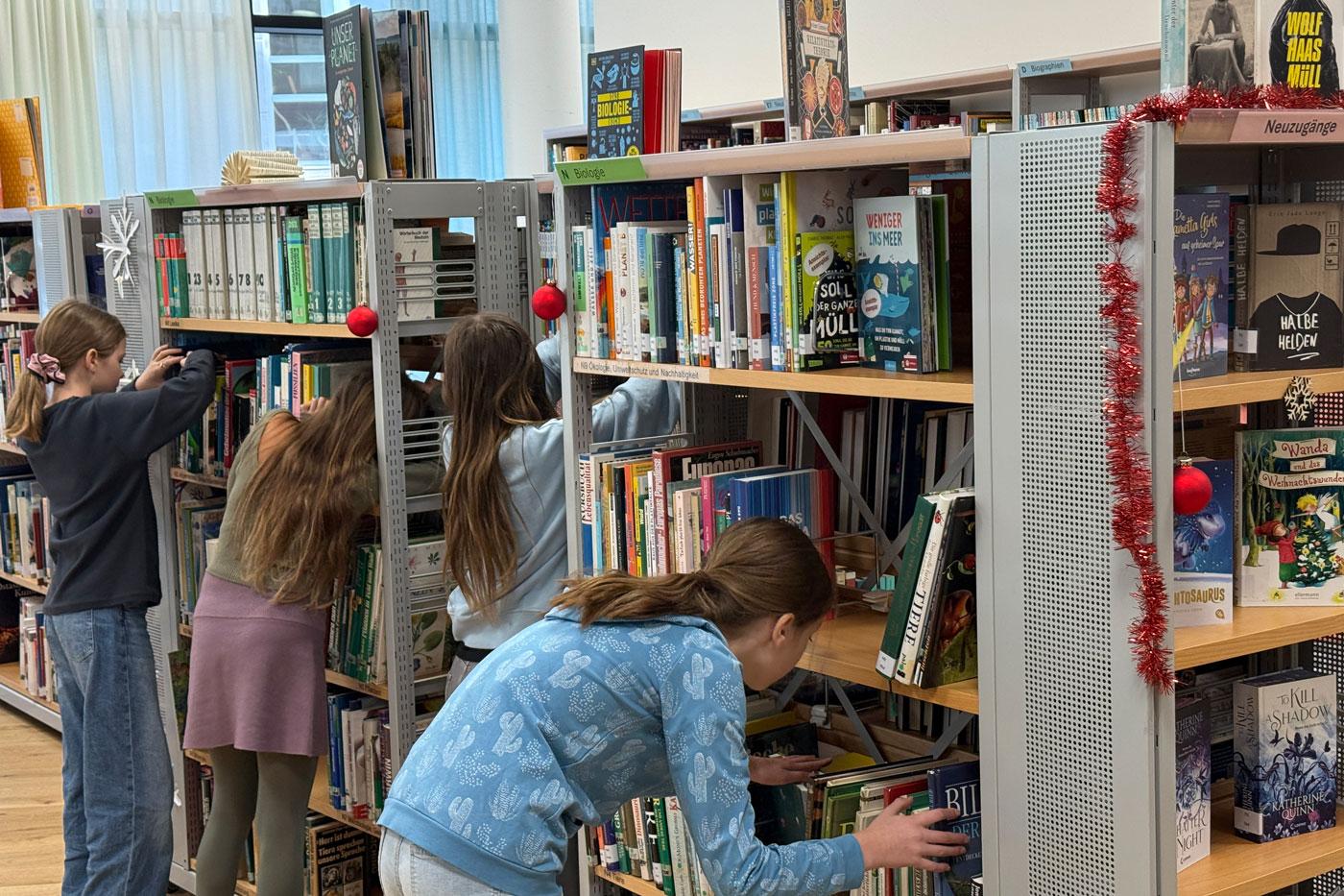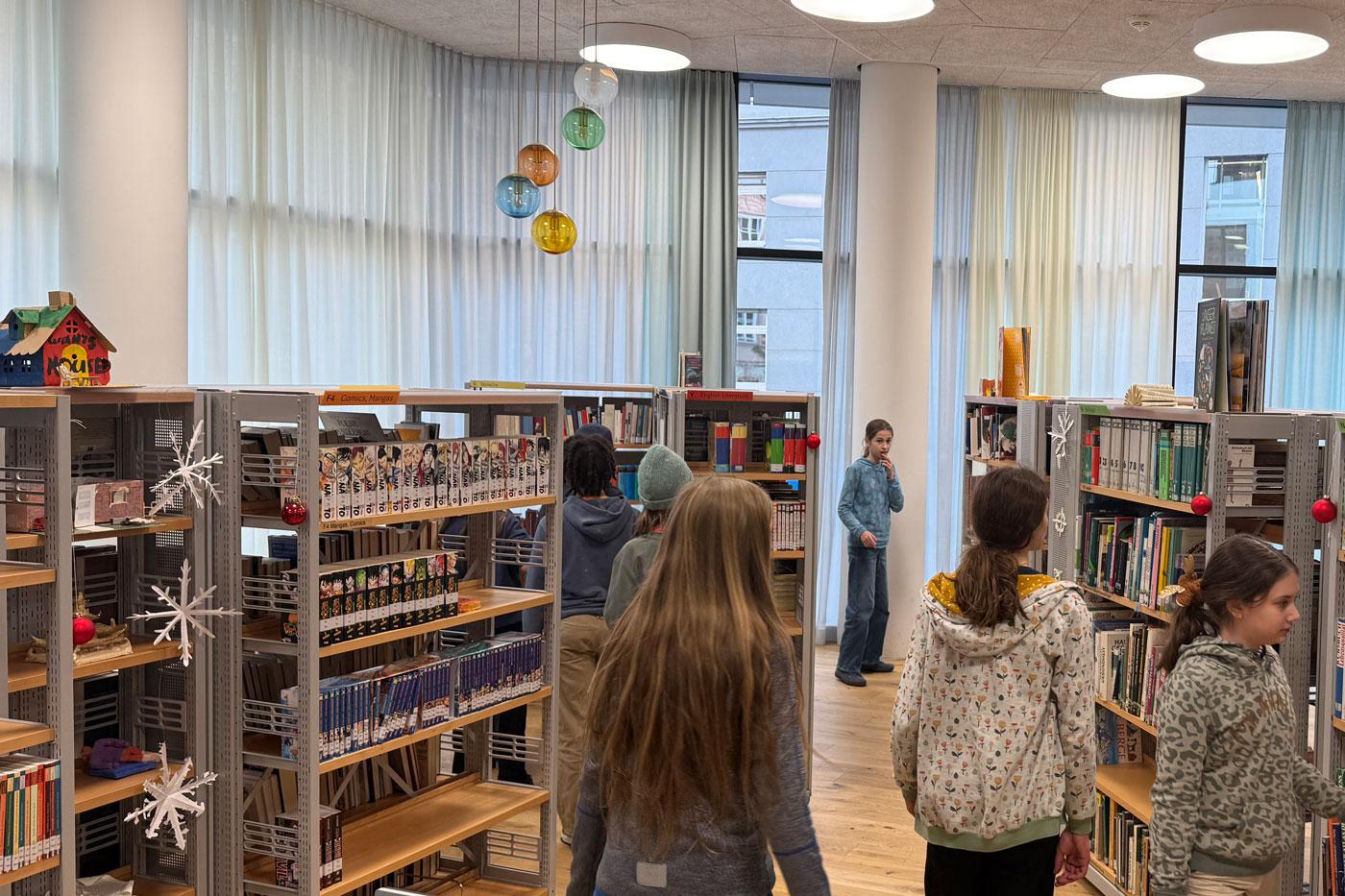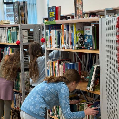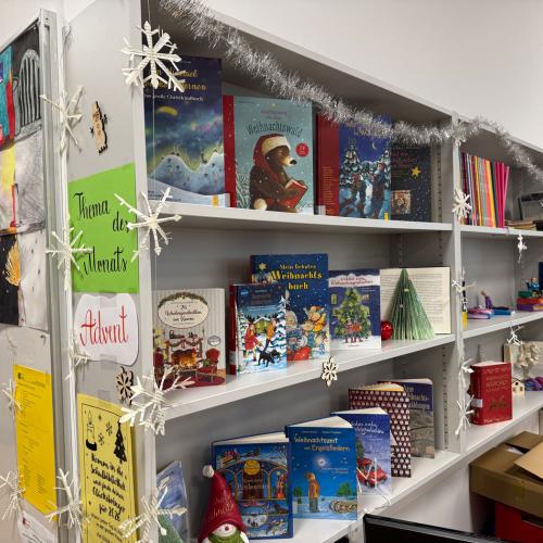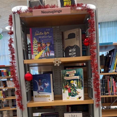 Die Schulbibliothek erstrahlt in festlichem Glanz! Bereits jetzt ist sie liebevoll weihnachtlich dekoriert und lädt alle Schüler:innen und Lehrpersonen zum Verweilen und Schmökern ein.
