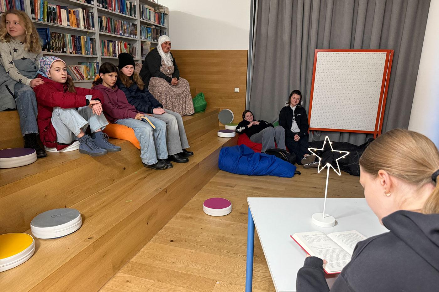 Tägliche Weihnachtsgeschichte: Jeden Morgen von 7:40 bis 7:50 Uhr wird eine stimmungsvolle Weihnachtsgeschichte vorgelesen – mal von Lehrpersonen, mal von Schüler:innen. Ein perfekter Start in den Tag!