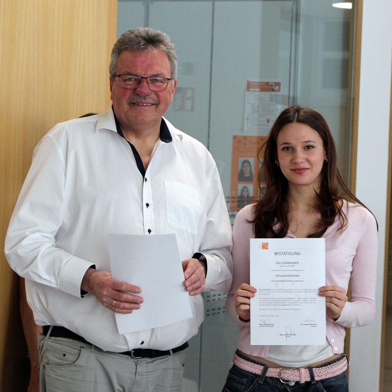 Am Freitag, den 6. März 2026 mussten wir uns mit ein bisschen Wehmut von unseren 8. Klässlern verabschieden. Herr Direktor Pittl bedankte sich für ihren Einsatz und ihr Engagement und lobte ihre soziale Kompetenz. Mit Überreichung der Zertifikate mussten wir sie nun mit einem großen Dankeschön und den besten Wünschen für ihre Zukunft aus der Arbeit im Schulsanitätsteam entlassen.
