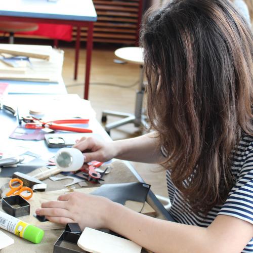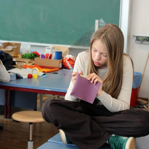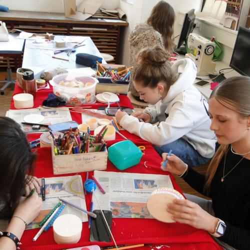 Für die drei Tage, die ganz dem künstlerisch-kreativen Schwerpunkt gewidmet waren, wünschten sich die SchülerInnen der Klasse 3E ein übergreifendes Thema zu bearbeiten. Es sollte sich zwar mit Form und Farbe befassen, aber auch handwerklich sein.