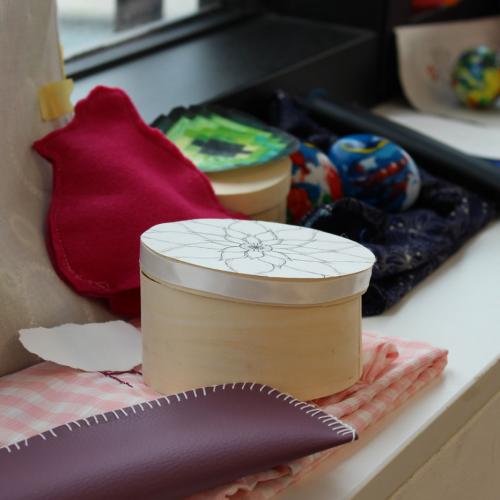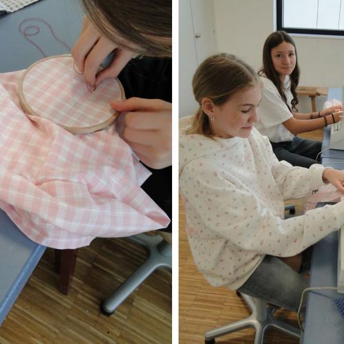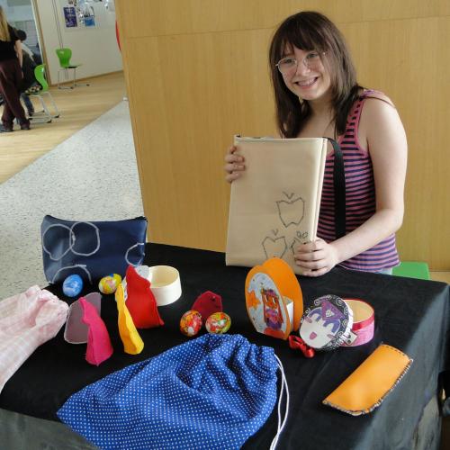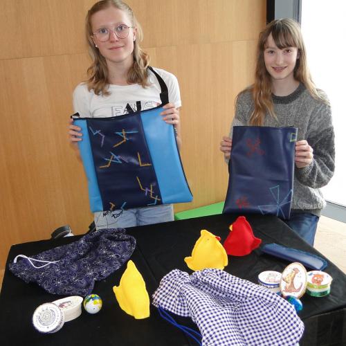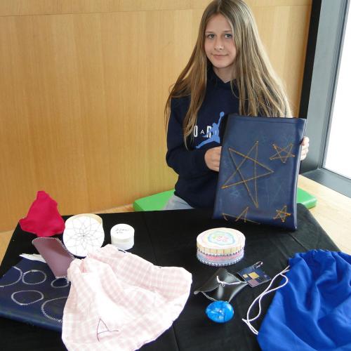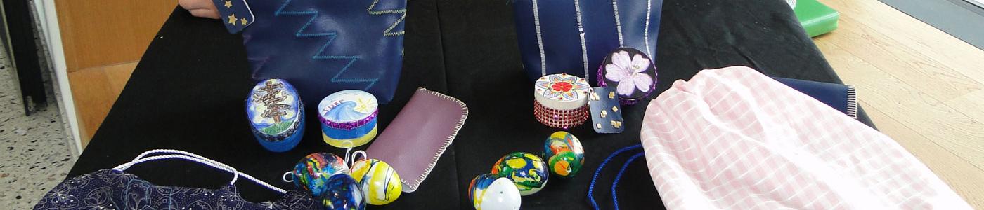 Die SchülerInnen zeigen euch in den Bildern stolz ihre genähten Handtaschen, Toilett-Taschen, Brillenetuis, bemalten Spanschachteln, ... und es geht danach sicher noch weiter, wenn man erst einmal auf den Geschmack kommt. Viel Freude am Betrachten der Arbeiten wünschen die Kunst-SchülerInnen der Klasse 3E und Prof.in Hedwig Meinhart, die sie betreuen durfte.