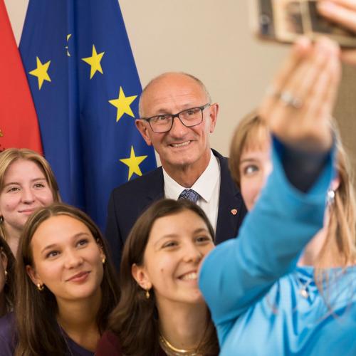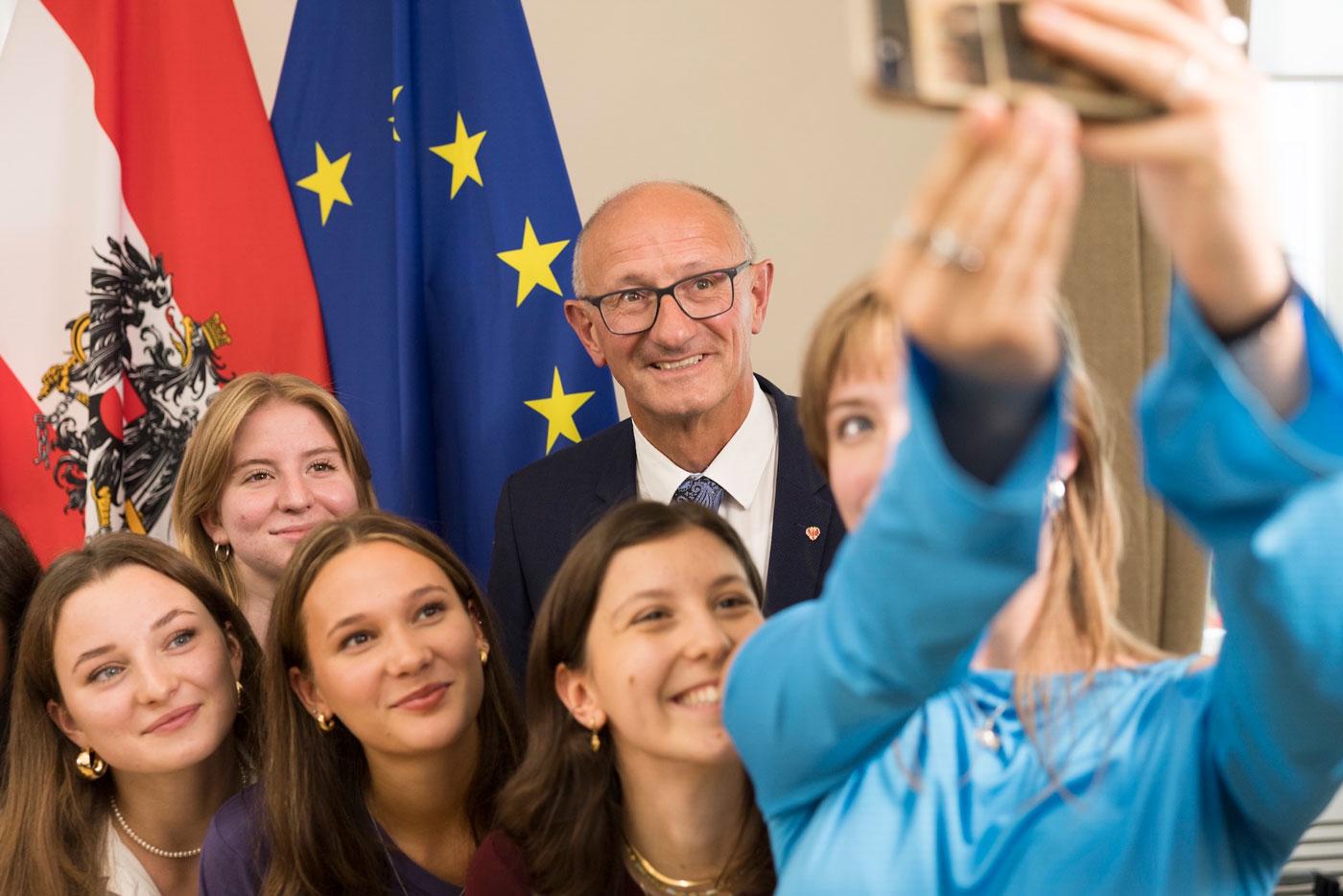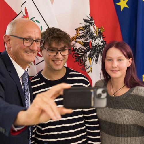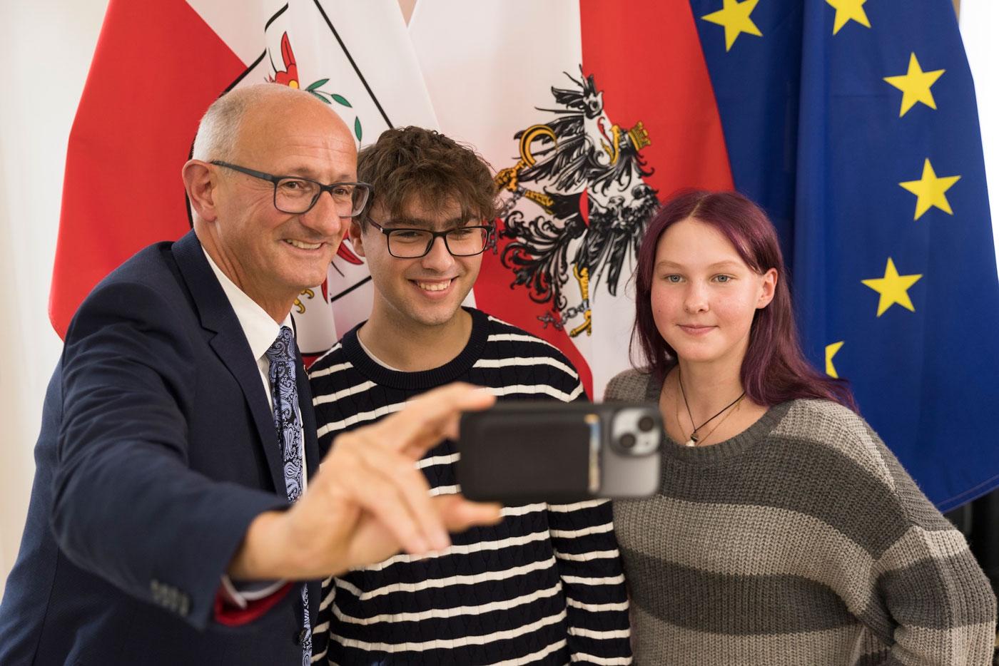 Nach dem offiziellen Teil blieb noch Zeit für das Beste zum Schluss: Selfies mit dem Landeshauptmann und ein kurzer Blick vom berühmten Balkon des Landhauses – ein echtes Highlight!
