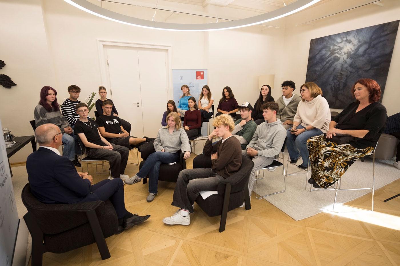 Die Klasse 8B des BG/BRG Sillgasse besuchte den Tiroler Landeshauptmann Anton Mattle im Landhaus. Nach einer kurzen Einführung in die Arbeit des Landtags bekamen wir die Gelegenheit, dem Landeshauptmann persönlich Fragen zu stellen – zu Themen, die uns als junge Menschen besonders beschäftigen: leistbares Wohnen, Abwanderung, Bildung und die Kommunikation zwischen Politik und Jugend.
