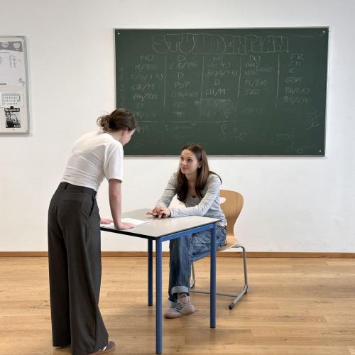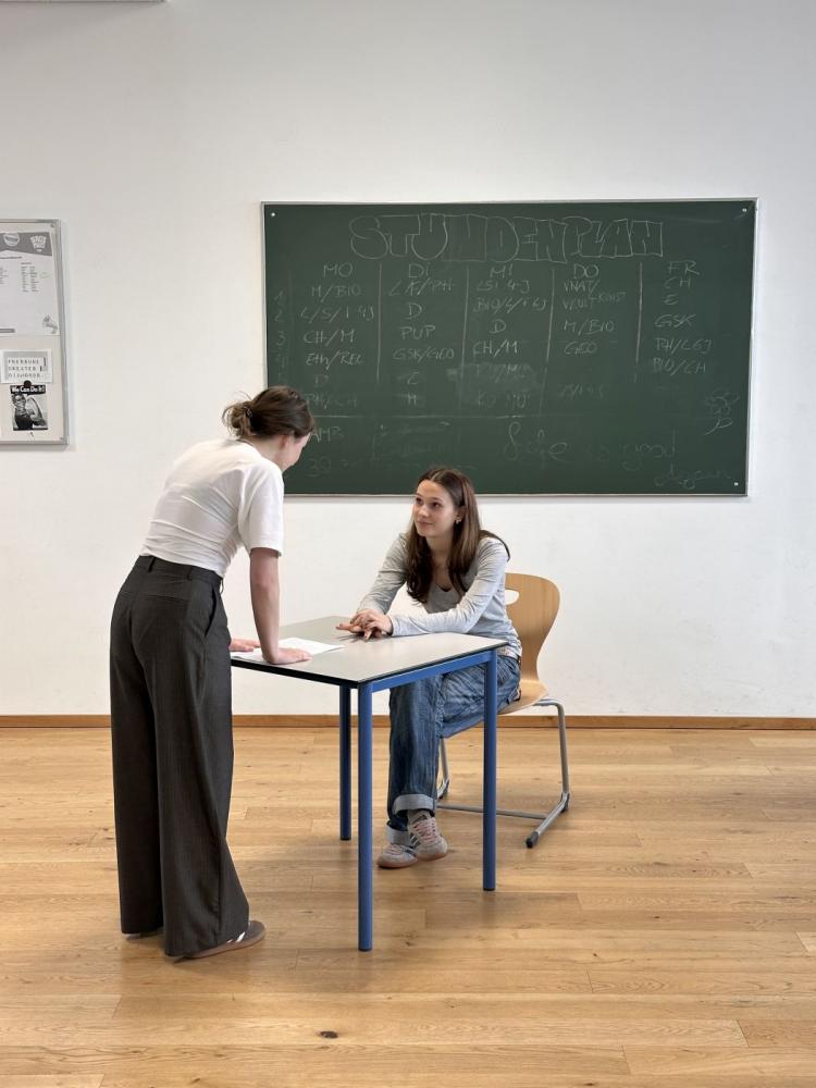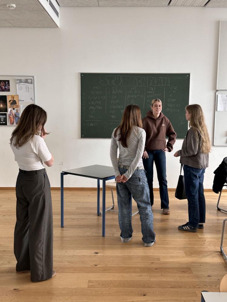 Was bedeutet Gerechtigkeit? Müssen für das Erreichen einer gerechteren Gesellschaft auch Opfer in Kauf genommen werden? Basierend auf dem Stück „Die Gerechten“ von Albert Camus beschäftigten sich die Schüler:innen der Klasse 8AB mit Theaterpädagogin Daniela Oberrauch mit diesen und vielen anderen Fragen. Gemeinsam wurde das Stück nachbesprochen, diskutiert und analysiert. Zudem probierten die Schüler:innen, unterschiedliche eigene Ideen zum Thema „(Un-)Gerechtigkeit“ in kleinen Sketches aufzuführen.