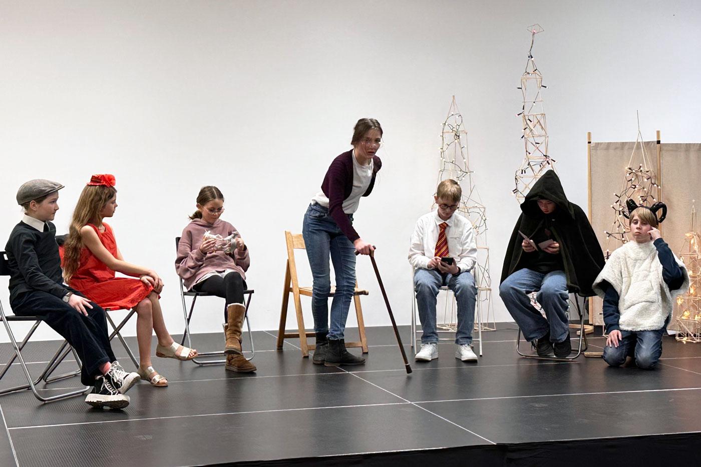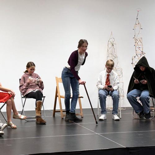 Szenen proben, Text lernen, Bühne umstellen, Auftritte üben, Licht ein, Licht aus und dann noch einmal alles von vorne… Ein Probenwochenende ist intensiv, aber auch der Spaß darf dabei nicht zu kurz kommen. Deshalb wünschten sich die Jungschauspieler:innen von Sill(y) Acting dieses Mal ein Probenwochenende mit Übernachtung. Ende Jänner wurde also nicht nur die Bühne, sondern gleich das ganze Schulhaus unsicher gemacht. Am Samstagnachmittag war dann nicht nur das Stück das erste Mal durchgespielt, sondern auch die Energiereserven aller anwesenden 25 Schüler:innen und der Lehrpersonen waren aufgebraucht.