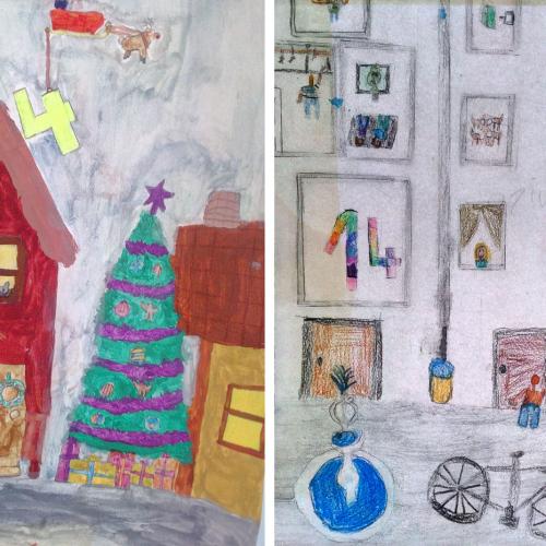 Die Schüler:innen der 1E-Gruppe von Prof. Isser gestalteten als Adventskalender den Gedanken, was sich in einem vorweihnachtlich gestimmten Moment wohl alles nebeneinander ereignen kann.