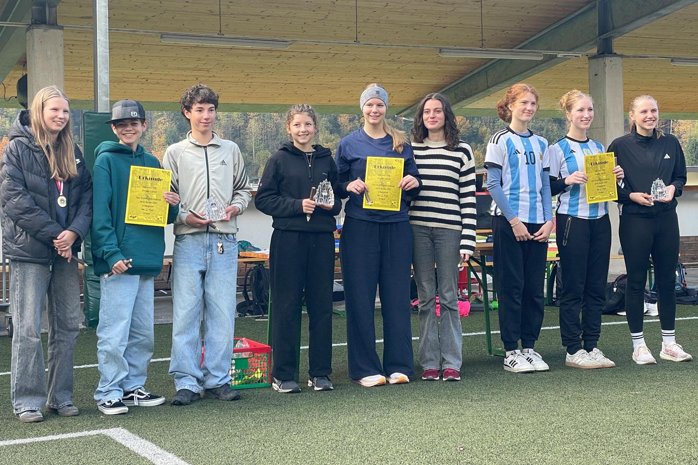 Die Leistungen konnten sich sehen lassen: In der Einzelwertung erreichten mehrere unserer Schüler:innen Spitzenplätze. Besonders stark präsentierten sich Mira Brinkmeier (3. Platz, 1./2. Klasse weiblich), Emma Seidel (4. Platz, 3./4. Klasse weiblich), Felix Brinkmeier (2. Platz, 3./4. Klasse männlich), David Steuxner (5. Platz, 3./4. Klasse männlich), sowie Lilian Haberl (3. Platz, Oberstufe weiblich) und Valentin Biedermann (3. Platz, Oberstufe männlich).
