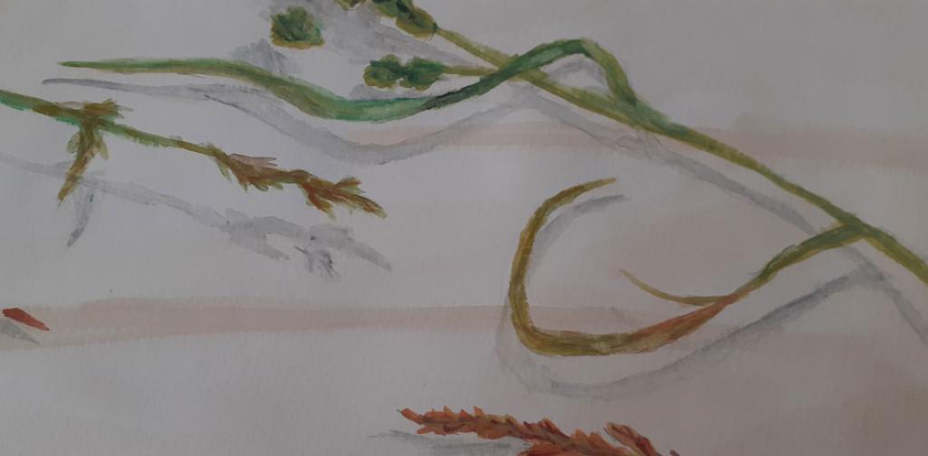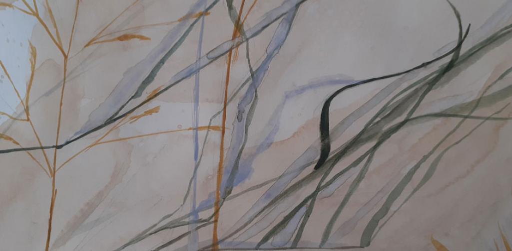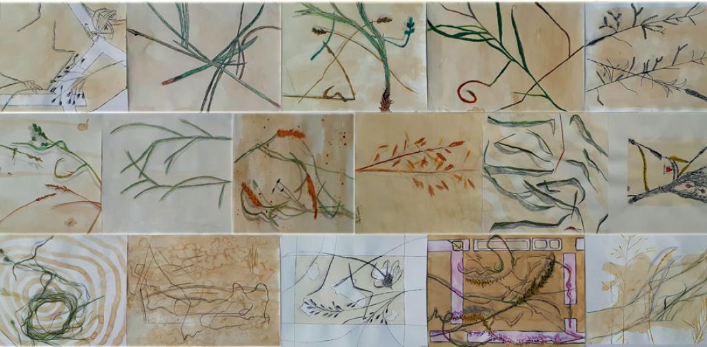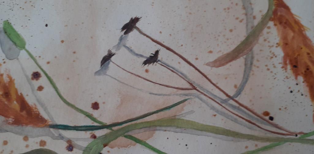 Die naturalistischen Gräser-Kompositionen der fortgeschrittenen KünstlerInnen der Oberstufe wurden - mit ihren Schatten - sehr stimmig auf Teefarben umgesetzt.