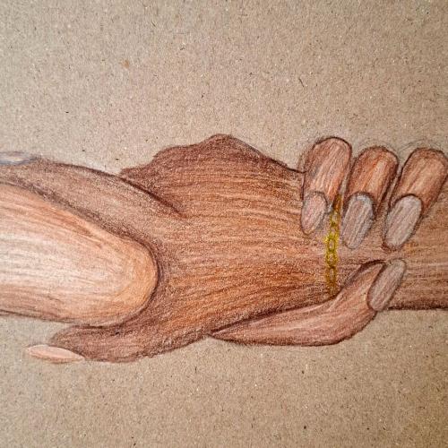 Ein zentrales Ziel der Aufgabe war die naturalistische Darstellung verschiedener Hautfarben mit Holzstiften. Die Schüler:innen experimentierten intensiv mit Farbmischungen, um individuelle Nuancen herauszuarbeiten – eine Herausforderung, die viel Beobachtungsgabe und kontrollierten Farbeinsatz erforderte. Durch gezielte Schattierungen und das Modellieren der Flächen gelang es in den Darstellungen, zusätzliche Plastizität zu verleihen. Licht- und Schattenübergänge geben den Händen Volumen und Lebendigkeit.