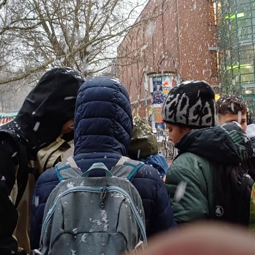 Die Reise begann am 25. März morgens mit der Zugfahrt nach München. Der Mittagspause auf dem Karlsplatz folgte der Besuch des Deutschen Museums, das die Schüler*innen in Kleingruppen erkundeten. Organisiert war im Deutschen Museum auch die vorübergehende Gepäckaufbewahrung. So folgte nach dem Museumsbesuch mit Schwerpunkten wie Raumfahrt, Photographie und Film, Typographie und Codierung, die Fahrt in die Unterkunft mit Zimmerbezug und Abendessen.