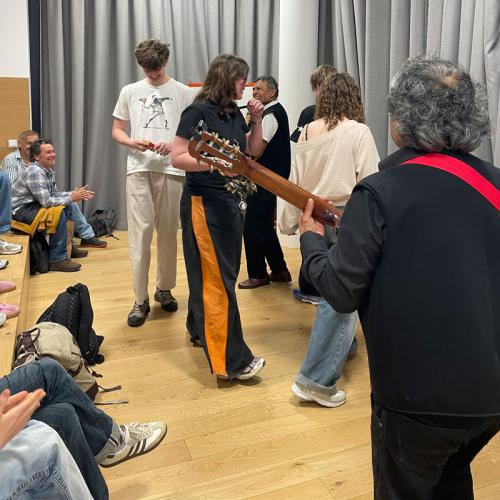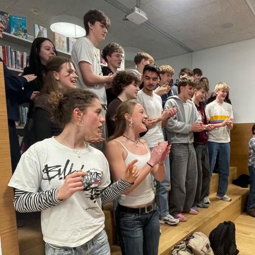 Wo liegt eigentlich Peru genau? Wie heißt der große See im Südosten des Landes und welche Sprachen werden in Peru neben Spanisch noch gesprochen? Diese und noch viele weitere Fragen beantworteten am 20. März 2026 die zwei peruanischen Musiker Lupo Concha und Jose Miranda, als sie unseren Spanischgruppen der 7. Klassen ihr Land, ihre Kultur und vor allem ihre Musik näher brachten.