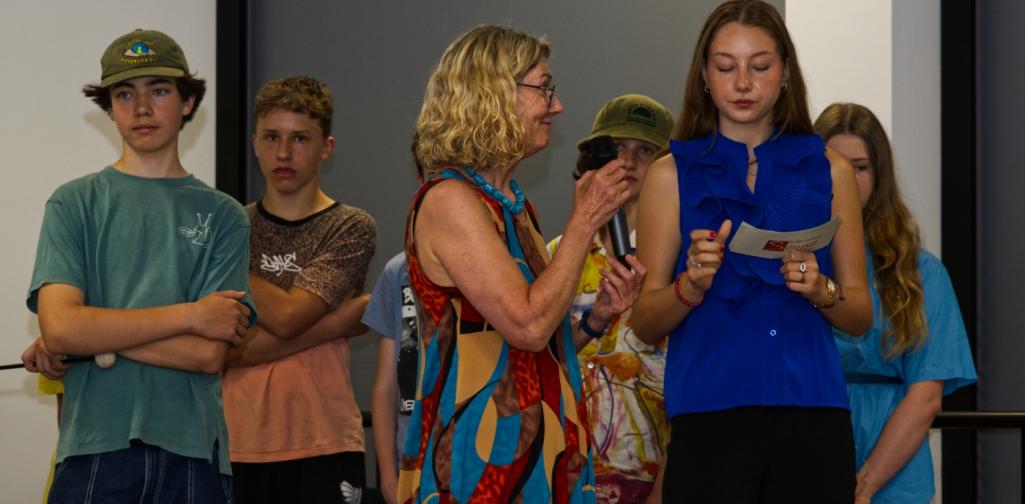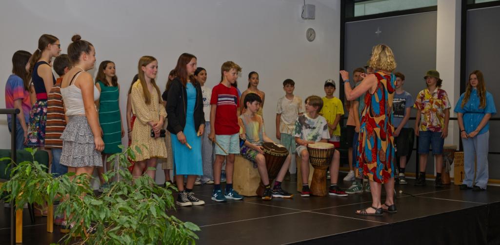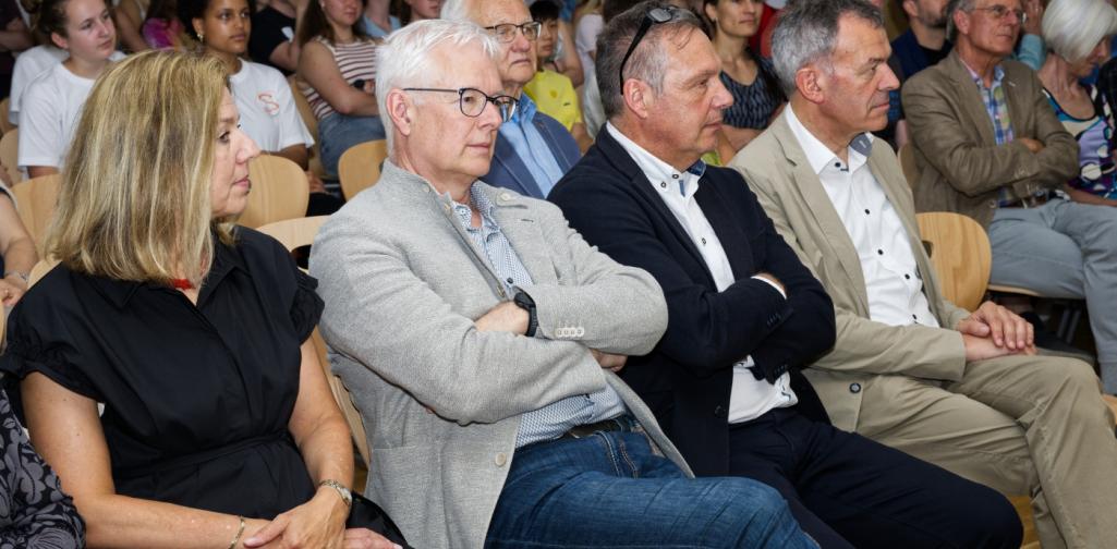 Durch das Programm führten die Moderatorinnen Leni Draxl, Valentina Köck, Emilia Landi und Valentina Wackerle (alle 7C). Musikalisch umrahmt wurde der Festakt von den Klangraumschüler:innen der Klassen 3a und 3b unter der Leitung von Prof.in Blanka Neuner.
