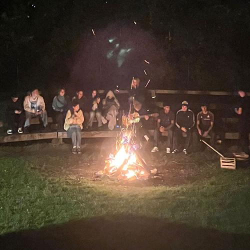Als es langsam dunkler wurde, griff einer von der Klasse zur Gitarre, das Feuer wurde noch einmal entfacht, und plötzlich war da dieser Moment, den man nicht plant, der aber perfekt ist: Musik, Feuer, Freunde – und das Gefühl, dass man gerade etwas erlebt, das man nie vergessen wird.