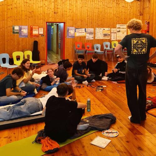 Irgendwann verzogen sich die ersten in die Schlafsäcke, während andere noch Nougat Bits in der Küche knabberten. Am nächsten Morgen gab es keine Eile: ausgeschlafen frühstückten wir Müsli und Co. in der warmen Küche, noch etwas verschlafen, aber rundum zufrieden. Danach hieß es: aufräumen, putzen, zusammenpacken und Abschied nehmen von einem Haus, das in zwei Tagen ein bisschen wie „zu Hause“ geworden war.