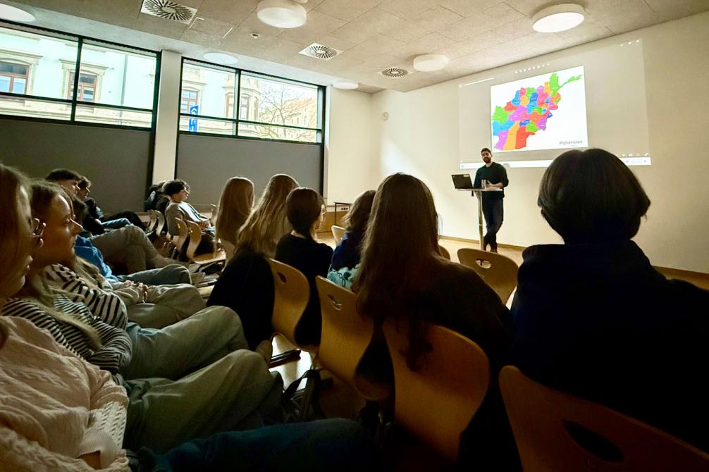 Am 16. Dezember 2025 hatten Schüler:innen der Vernetzten Kulturwissenschaften (6D und 6AB) die Gelegenheit, mit Emran Feroz ins Gespräch zu kommen. Der österreichisch-afghanische Journalist, Kriegsreporter und Autor präsentierte eindrucksvolle Fotos und berichtete von seiner journalistischen Arbeit in den Kriegsgebieten Afghanistans sowie von seinem Aufwachsen in Tirol.