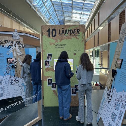 Für manche ist sie selbstverständlich, für andere hart erkämpft, für einige sogar nur eine Utopie, die es erst zu erreichen gilt – die Demokratie ist allgegenwärtig und doch fragil. Genau deshalb lohnt es sich, sich intensiv mit ihr auseinanderzusetzen und ihre Bedeutung für das eigene Selbst zu reflektieren. Das konnten die Schüler:innen der Ethikgruppe 5AB, angeleitet durch unsere ehemalige Kollegin Heidi Unterhofer, die uns als Lotsin durch die Ausstellung führte, mitbekommen.